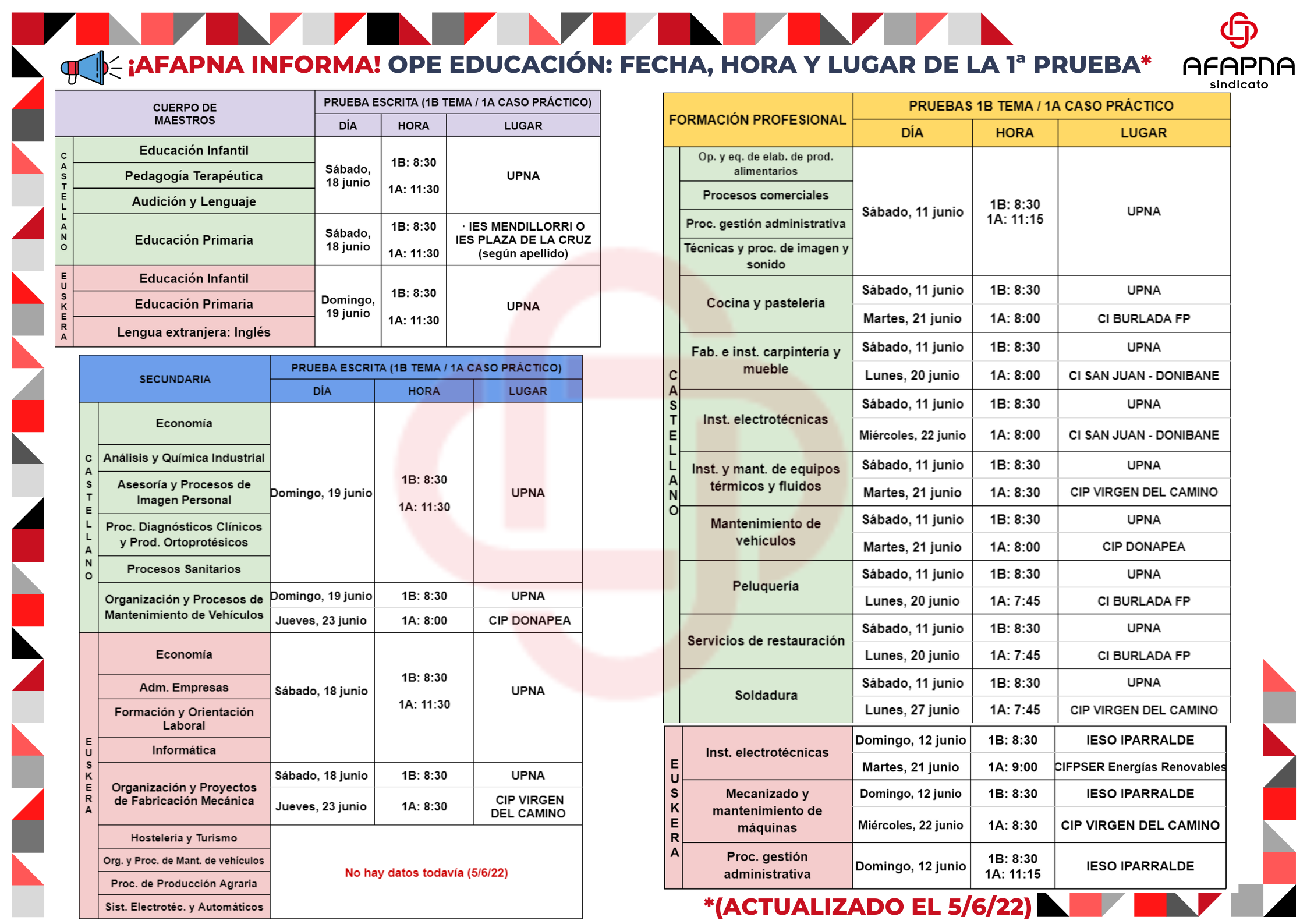 OPOSICIONES DOCENTES 2022: FECHA, LUGAR Y HORA DE LA 1ª PRUEBA.