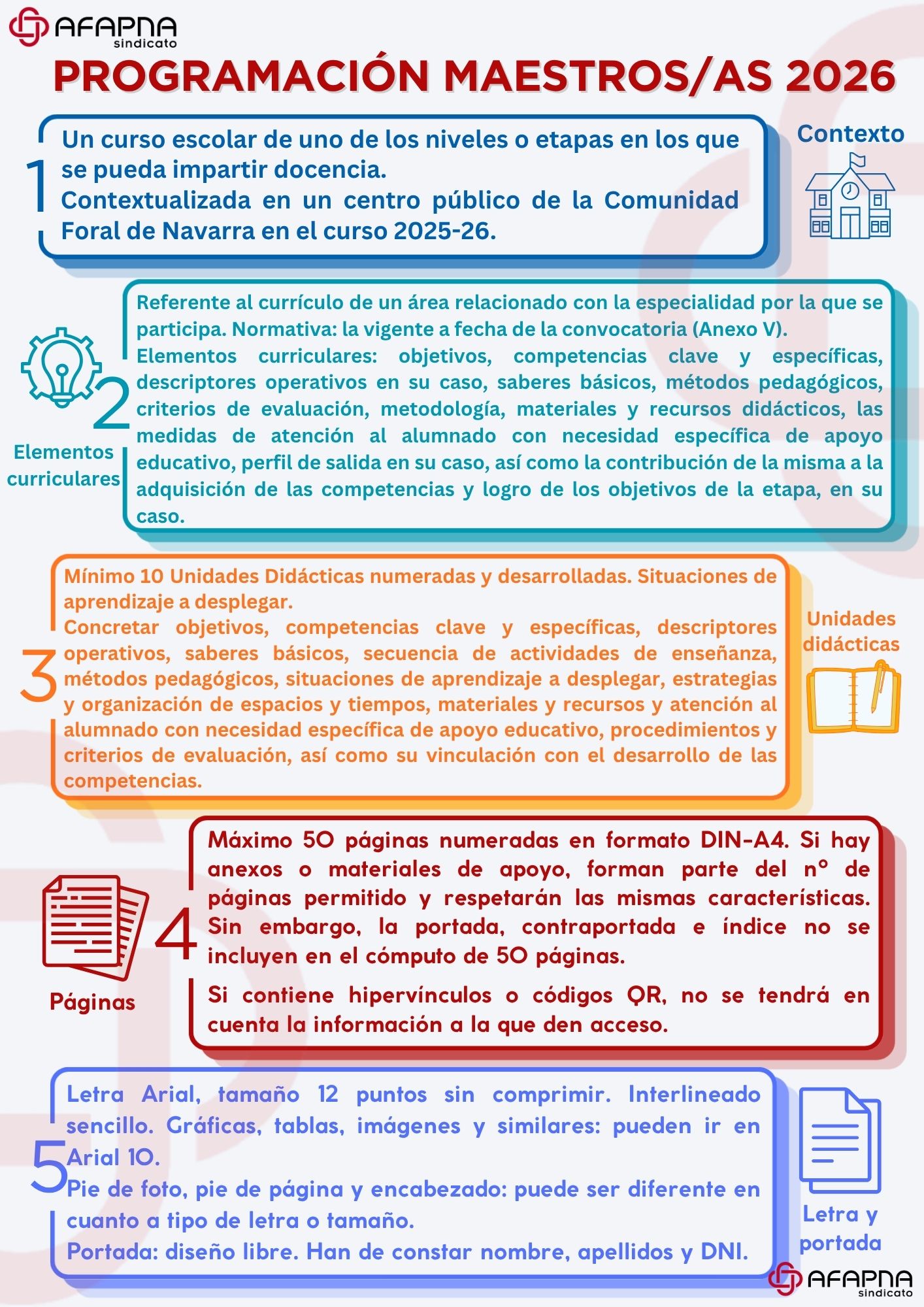 En AFAPNA, hemos realizado esta infografía para el cuerpo de Maestros con los aspectos formales de la programación, para que no te olvides de nada.